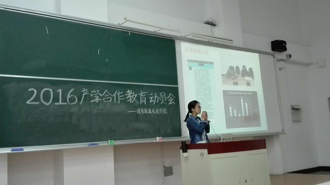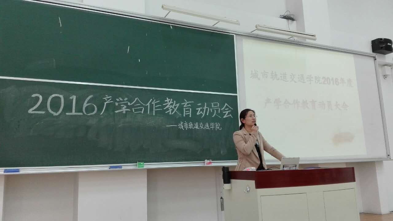 4月14日,城市轨道交通学院在教学楼A316召开2016年产学合作教育动员会,学院党总支副书记万慧琳、产学合作教育工作主管刘景军以及我院2016年报名参加产学合作教育的百余名同学参加了动员会。