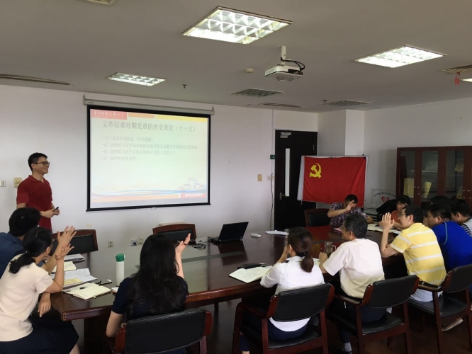 6月30日中午,城市轨道交通学院教工第二党支部在行政楼1112会议室举行了“两学一做”专题党课。教工第二党支部书记陈文杰主讲了“党章的形成和发展”专题党课。