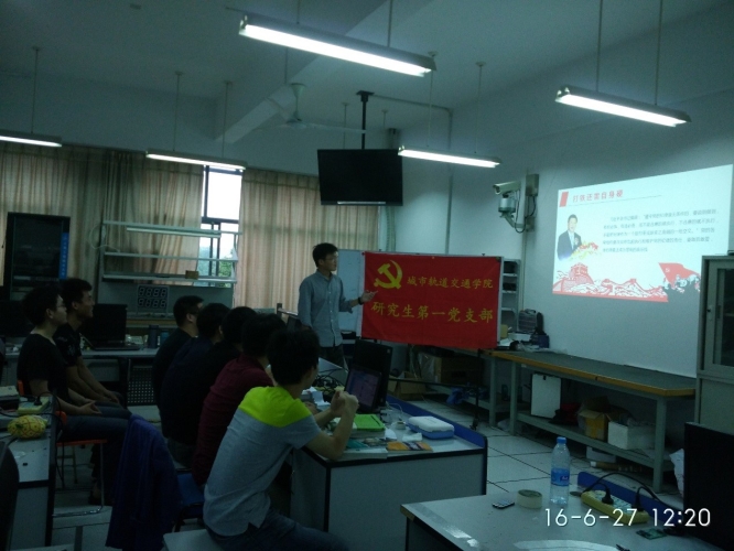为深入落实“两学一做”学习教育活动,6月27日中午12点,城市轨道交通学院研究生第一党支部于实训楼5308教室,开展以“打铁还需自身硬”为主题,学习总书记系列重要讲话的专题党课。由支部书记张雯柏同志主讲,支部党员都积极参加会议。