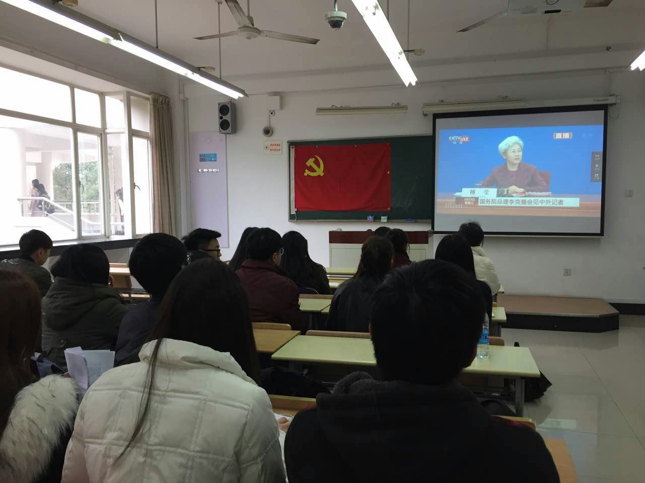 由于支部中很多是大三大四的学生,因此当央视网的记者提到有关就业的问题时,支部同志都非常关心,而李克强总理的回答也没有辜负我们的期待。总理表示今年强调就业优先,会一直实施积极的就业政策,营造出有利于创业就业的环境,国家也完全有能力扩大就业,创造岗位,同时也鼓励人民群众用自己的智慧去创造“金饭碗”。总理的回答让即将进入社会的我们增添了更多的信心。