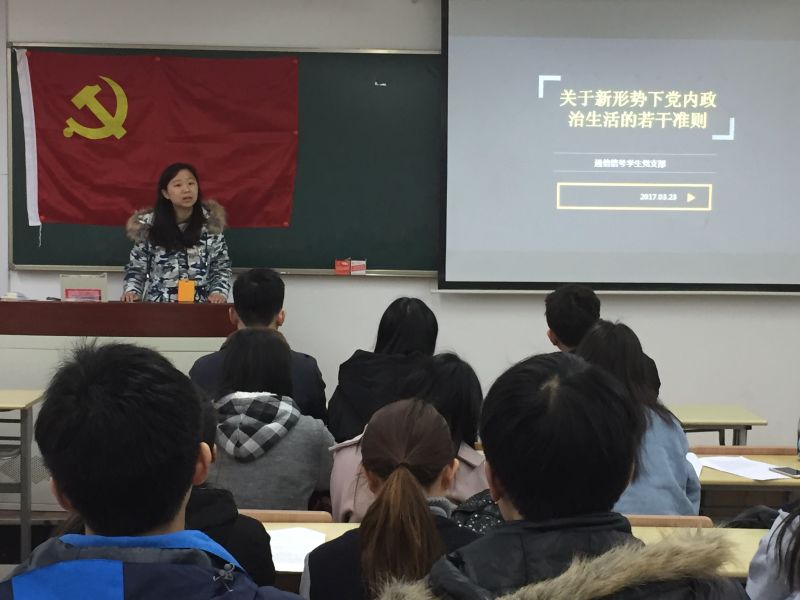 2017年3月23日下午,通信信号学生党支部在教学楼C307进行组织生活。在十八届六中全会过去几个月里,其中审议通过的《关于新形势下党内政治生活的若干准则》作为此次支部大会组织生活的主要学习内容。本次组织生活由刘真君同志主持,缪松杰同志负责记录。