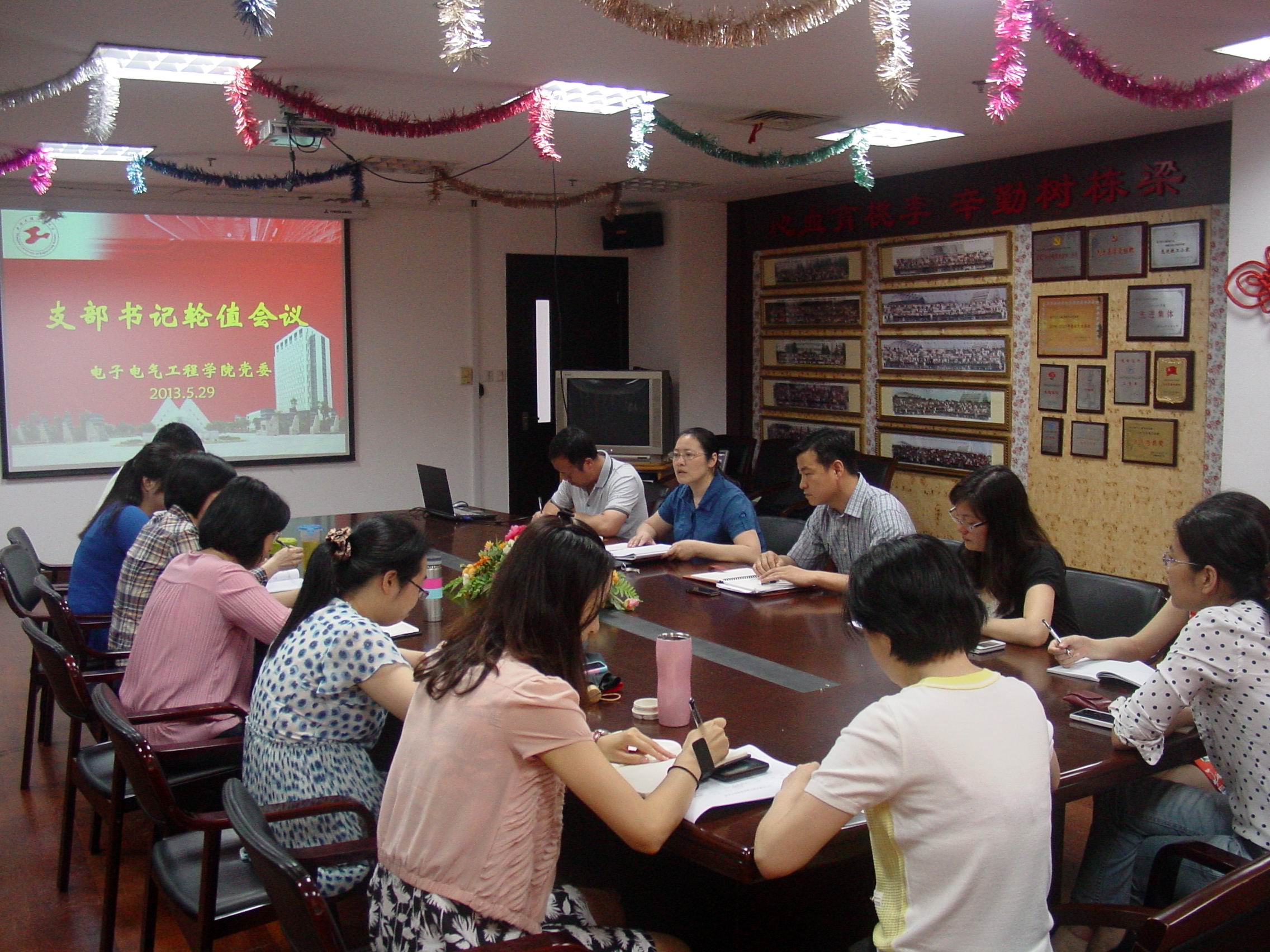 5月29日上午,电子电气工程学院在行政楼912召开支部书记轮值会议,电子电气工程学院党委书记茅蕾、副书记王东阳、挂职干部六盘水师范学院物电系总支副书记(主持工作)王家理及全体党支部书记参加了会议,会议由党委书记茅蕾主持。