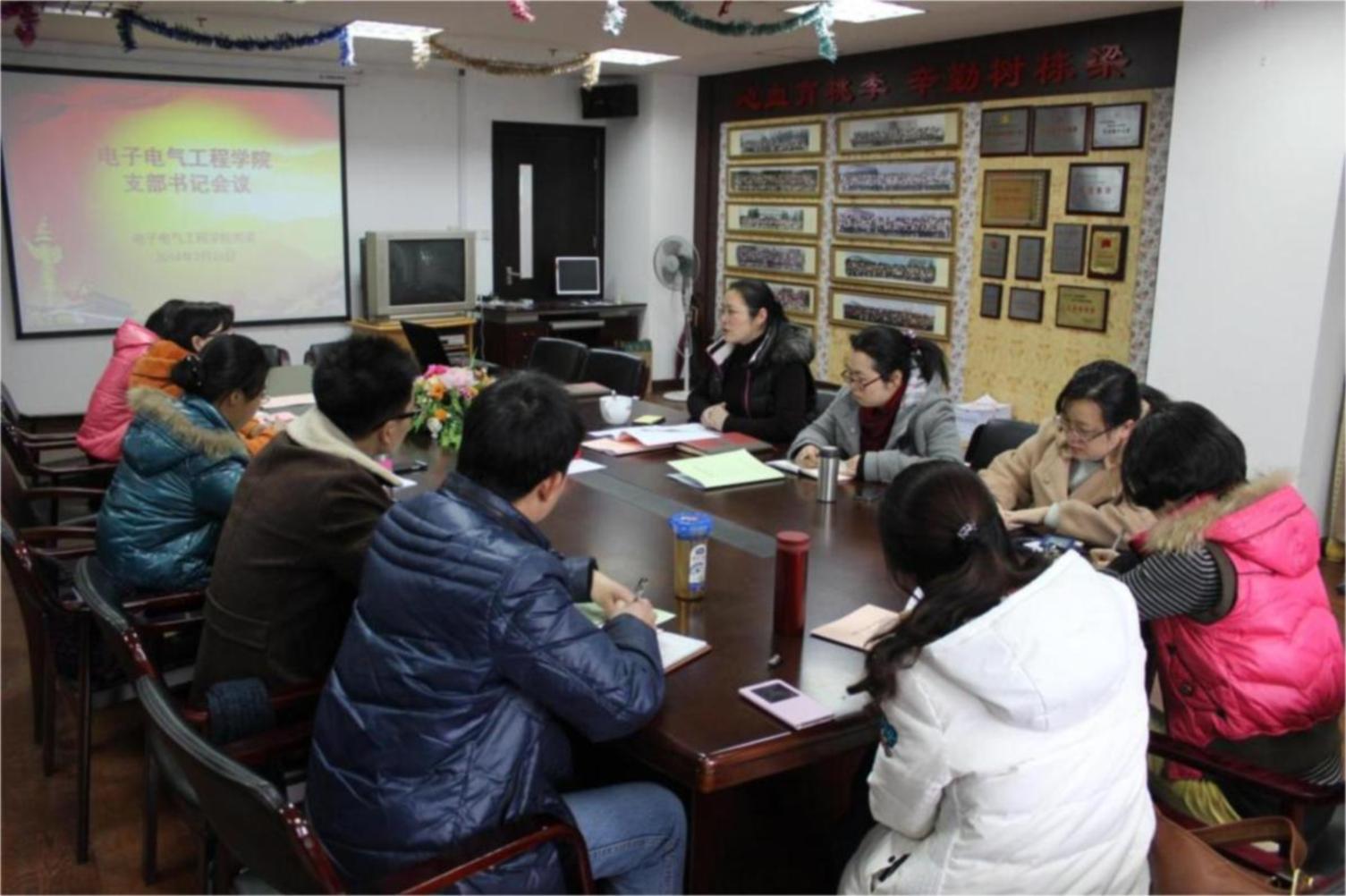 2月26日上午,电子电气工程学院在行政楼912室召开支部书记例会。院党委书记茅蕾向全体支部书记介绍了学院开展党的群众路线教育实践活动的基本情况,指出学院党委在开展活动过程中从群众最关心、最迫切的问题入手,着力解决关系群众切身利益的问题,真正让全院师生受益。院党委书记茅蕾在会上通报了今年学校的党政工作要点,强调各支部要重点抓好整改方案的落实,巩固群众路线教育实践成果。