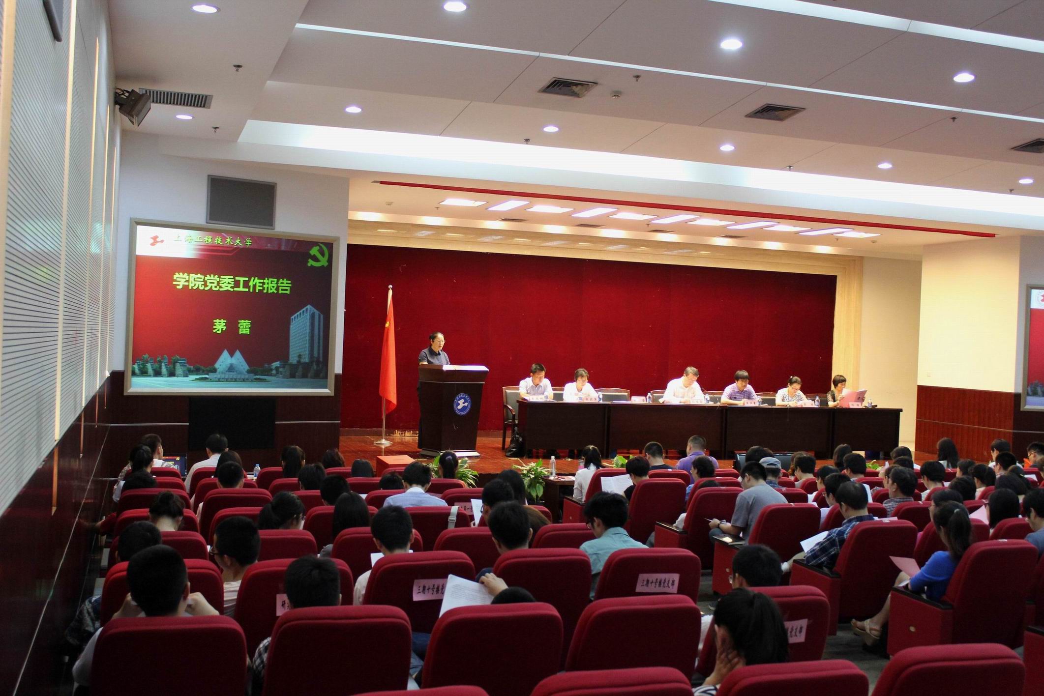本次党员大会应到党员150名,实到144名,达到会议有效人数。会议在庄严的国歌声中拉开了序幕,学院党委书记茅蕾首先作学院党委工作报告,她从理论学习、党委政治核心作用、教职工思想政治工作及宣传教育工作、党组织思想建设和组织建设和学生思想政治教育及学风建设等五个方面回顾了学院四年来的工作,汇报了学院党费的收缴使用情况并指出了当前存在的一些问题。最后院党委书记茅蕾提出了今后工作的设想:一是要继续加强政治理论学习,深化服务型党组织建设,提高党员干部的政治业务素养,进一步提升学院党政班子的凝聚力;二是要加强和改进思想政治工作思路,完善五位一体的大学生思想政治教育工作体系;三是要加强精神文明建设和学院文化建设,营造和谐的育人环境;四是要进一步加强党的统战工作,发挥工会、共青团的作用,关心教职工的生活。