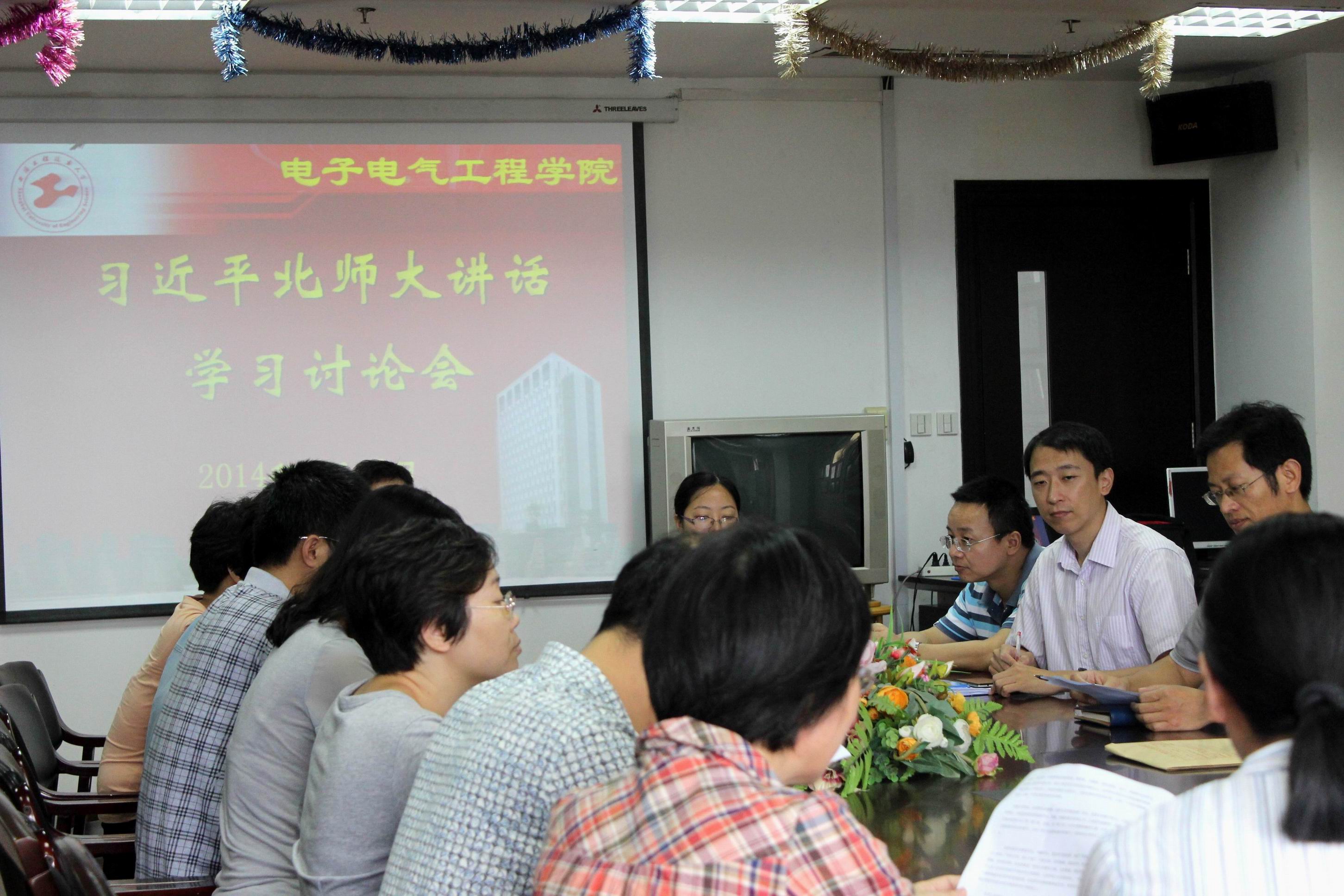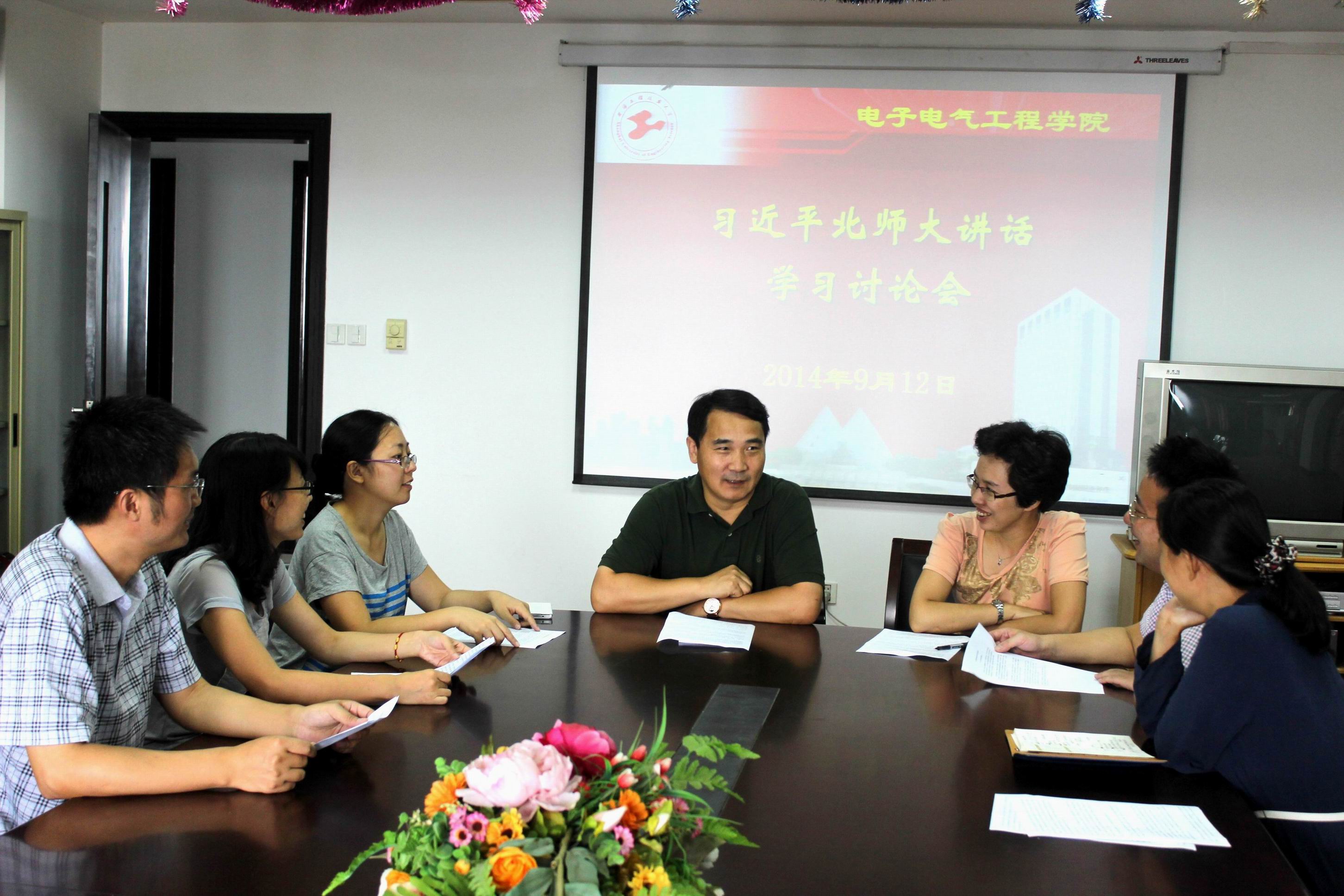 9月12日下午,新学期伊始,电子电气工程学院教职工在学院党委组织下,在行政楼912会议室就习总书记在北师大的讲话精神展开热烈讨论。大家对总书记讲话内容反映热烈,在讨论中纷纷发表了自己的看法。