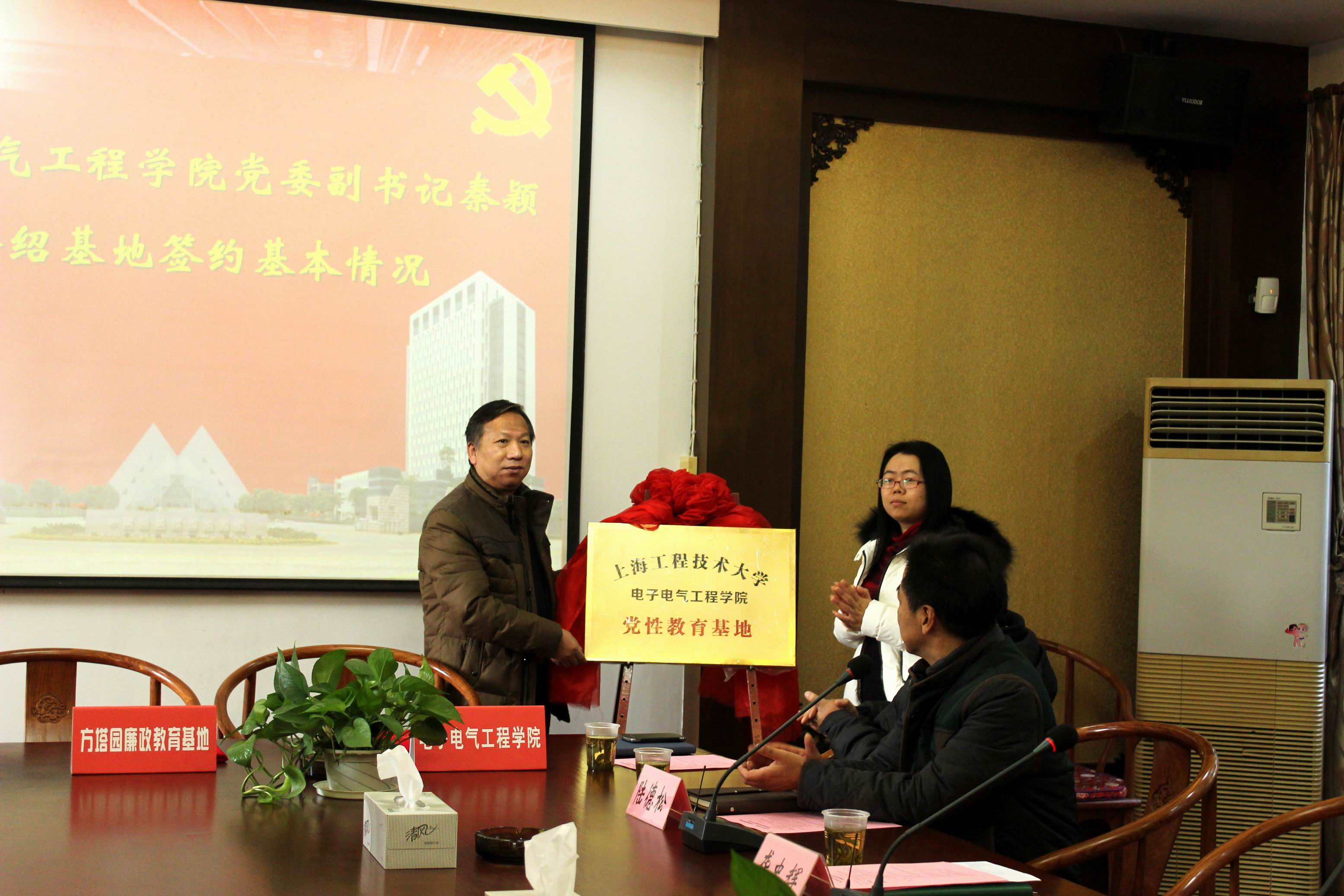 为进一步拓展党建育人平台,探索党建工作机制,提高党建质量,12月30日上午,上海工程技术大学电子电气工程学院党委副书记秦颖老师,组织员周科亮老师和学生工作办公室主任苏莹与部分学生党员同志来到了松江区方塔园,与方塔园廉政教育基地进行合作,双方在方塔园会议室举行了签约仪式,会议由组织员周科亮老师主持。