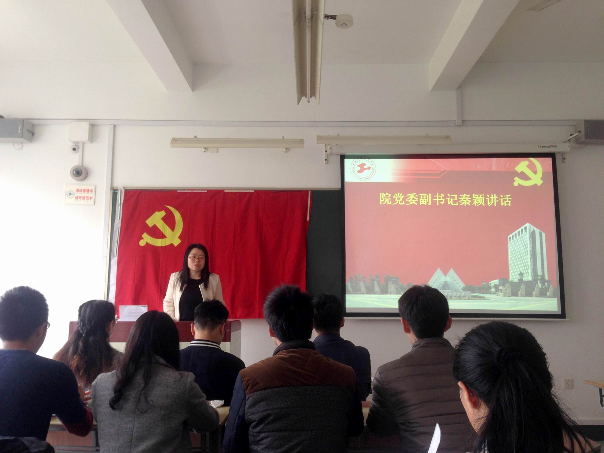 党委副书记秦颖十分关心大家的未来,她在讲话中给大家提出了增强党员意识,不负组织期望;坚持不断学习,争创一流业绩;正确对待利益,保持清正廉洁;接受教育管理,加强党性修养和感恩母校五点建议。秦老师在讲话中强调,作为党员,必须时刻牢记党员应尽的义务,不忘发挥先锋模范作用,不辜负学校各级党组织的期望和培养;要努力精通本行业的业务知识,成为本职工作的骨干和行家里手。