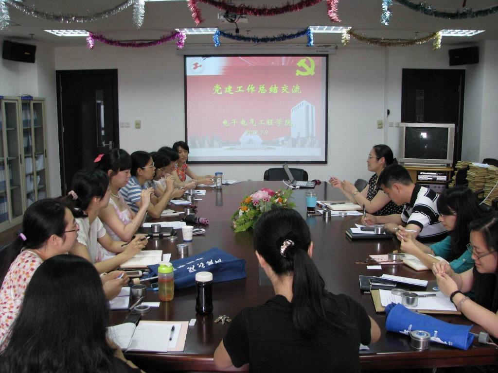 为总结本学期党建工作,展望下阶段工作规划,7月9日下午,电子电气工程学院在行政楼912会议室召开学院党建工作总结交流会。学院党委书记茅蕾,副书记王东阳,各教工和学生党支部书记出席会议,会议由院党委书记茅蕾书记主持。