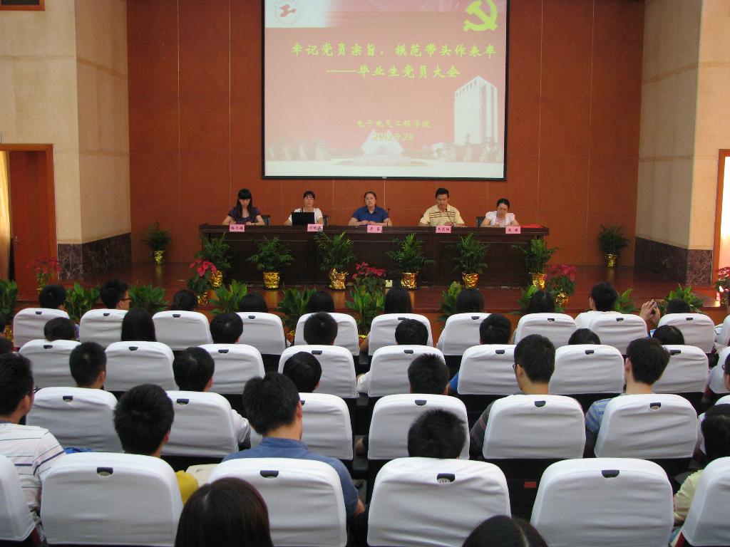 9月28日下午,电子电气工程学院党委在行政楼B310召开了“牢记党员宗旨,模范带头做表率”毕业生党员大会。学院党委书记茅蕾、副书记王东阳,组织员及各支部书记出席了本次大会。会议由院党委王东阳副书记主持。