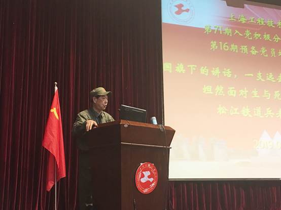 4月24日下午,原松江铁道兵部队现松江铁道兵老兵“讲师团”,来到上海工程技术大学为工程技术大学的预备党员以及积极分子们进行演讲,让我们在一个个英雄事迹中接受爱国主义教育,党性的教育。
