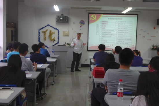 接下来李扬老师结合自己的工作经验,谈了自己在学院学生党建工作中遇到的问题,比如党组织生活民主氛围不够,组织生活形式单一等,引发学生思考,同时也给予所有预备党员之后开展组织生活一定启发。接下来李扬老师就《中国共产党党章》第五章的内容,讲解了组织生活的内容、主要形式、职能等一系列知识,同时又结合自己的工作经验为大家讲解了一些关于组织生活实践的相关知识。最后,李扬老师还留给预备党员一些思考问题,让同学们不仅能在课上积极思考问题,同时在课后也不忘学习。