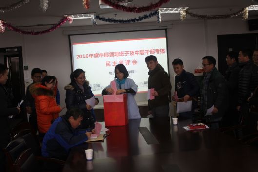 最后全体与会教师对学院领导班子和中层干部进行了测评。