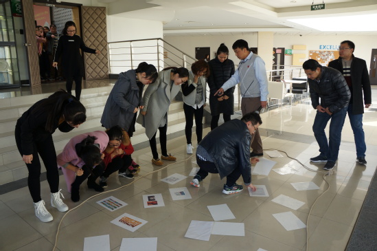 素拓训练伊始,陈猛老师把大家分组,并要求在规定时间内完成队长选拔、队旗设计、唱队歌、摆队形等策划。随后通过分组展示自己团队的队旗、队歌、队形、口号环节中,增进了彼此间的了解,培养了团队间的默契,加深了相互间的友谊。接下来的急速60秒活动,把各个团队引向激烈竞争,团队里的每一位老师都投入到积极分工、共同谋划的状态中,通过团队协作和合理分工,高效地完成了任务,大家感受到了素拓训练趣味性的同时,也体会到了活动背后的深刻内涵,更是对日常开展学生工作深受启发。