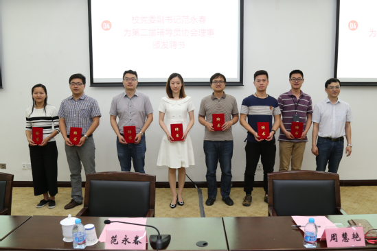 会上,校党委副书记范永春为辅导员协会首届理事会成员颁发纪念品,为新一届理事会成员颁发聘书,并发表讲话。范永春副书记肯定了辅导员协会所取得的工作成效,对辅导员协会今后工作提出了三点要求:一是立足科学定位,加强自身建设,要充分发挥在辅导员队伍建设以及大学生思想政治教育工作中的作用,建立和完善辅导员协会机构,构建辅导员协会运行长效机制;二是强化服务功能,丰富活动载体,通过辅导员沙龙、辅导员论坛、辅导员工作室等载体,大胆工作,不断创新,努力为每一位协会成员的发展、成才做好服务工作,使辅导员同志切切实实地体会到“归属感、成就感、幸福感、获得感”;三是搭建四个平台,建设“四型”协会,通过搭建学**台、交流平台、研究平台和激励平台,建设学习型、创新型、研究型和实践型协会。