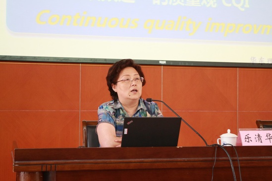 乐清华教授围绕制定面向产出的培养目标、明晰支撑培养目标的毕业要求、建立实现毕业要求的课程体系、教育目标达成度的评价与改进等四个方面作专题培训讲座,重点解读“产出导向(Outcome-BasedEducation,OBE)”的教育体系;详细讲述了本科专业培养方案中培养目标、毕业要求的内涵和编制要点,并对课程体系与毕业要求关联矩阵的构建、基于OBE的课程教学大纲的编写、考核方式的设计等,作了非常专业的阐述。乐教授以大量的案例分析,讲解了如何科学制定专业定位、培养目标及毕业要求,整个报告内容深入浅出,使在座教师受益匪浅。