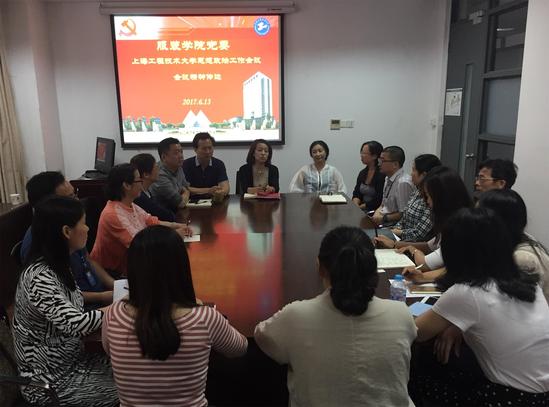 6月13日上午,服装学院党委在艺术楼A218会议室召开会议传达学习上海工程技术大学思想政治工作会议精神。服装学院党政领导班子全体成员、各支部书记、辅导员、教师学生代表出席了此次会议,会议由服装学院党委书记袁蓉主持。