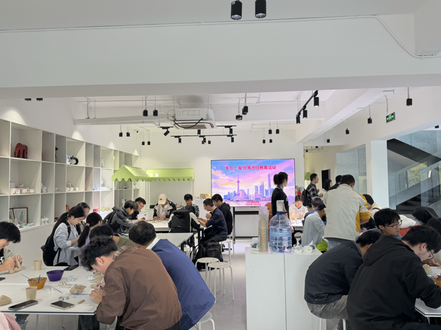 活动首站,师生们来到上海陶瓷科技艺术馆。在古朴雅致的环境中领略从古至今陶瓷艺术的演变历程,体验了手工捏陶的乐趣。泥土在指尖塑形,从一块朴素的泥坯逐渐有了生命的温度,让师生们在沉浸式体验中感悟了“化土为金”的工匠精神与中华文明的博大精深。