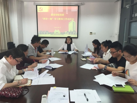 为贯彻落实党中央、上海市委、市教卫工作党委、校党委有关精神,全面推动从严治党向基层延伸、落实到每一个党支部、每一名党员,切实加强党员队伍建设,保持发展党的先进性和纯洁性,服装学院党委于4月12日下午在艺术楼A218会议室召开“两学一做”学习教育工作动员会,全体党支部书记、组织员出席,会议由党委书记袁蓉同志主持。