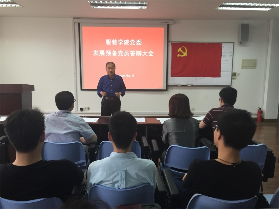 6月7日下午,为贯彻“两学一做”要求,服装学院党委在艺术楼A215召开研究生第一党支部发展党员答辩大会。校关工委特邀组织员吴德林、服装学院党委书记袁蓉、副书记李杨、校党委组织部朱良博、材料工程学院党委组织员阮晓栋、服装学院组织员郑艳以及研究生第一党支部全体党员、积极分子代表、群众代表参与了此次答辩大会。