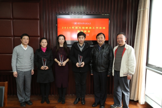 会上,后勤实业发展中心主任鲁柏青对2016年无偿献血工作进行了回顾和总结。今年市教委、市献血办下达给我校的目标数2128份,我校实际完成2138份,其中学生献血2116份,教工献血22份。为了表彰献血工作中的先进典型,今年评选出三个“先进集体”,分别为管理学院、材料工程学院、艺术设计学院;六个“优秀组织奖”,分别为机械工程学院、电子电气工程学院、航空运输学院、中法埃菲时装设计师学院、社会科学学院、高等职业技术学院;“先进个人”十二位,分别为教职工臧文娟、滕化鸟,学生刘洋、欧云比丽格、郭志勇、张瑾琛、张梦豪、朱起帆、罗翔勇、古丽江•哈丽拉提、边珍、张晨。管理学院党委副书记范君晖、艺术设计学院党总支副书记吕宁、城市轨道交通学院学生罗翔勇、后勤实业发展中心职工滕化鸟分别代表获奖单位和个人作了交流发言。