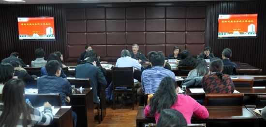 11月29日下午,国际交流与合作工作会议在行政楼506会议室举行。副校长鲁嘉华、国际交流处、各学院(部、中心)分管国际交流与合作工作院长(主任)及工作秘书等相关人员参加了会议。