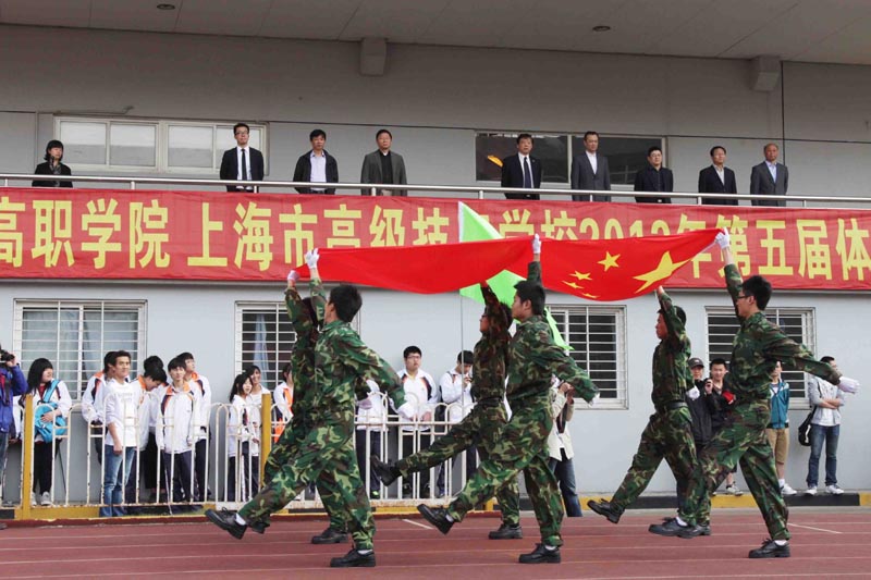 2013年4月27日上午8:30,在同学们的热情期待下,高职学院、上海市高级技工学校第五届体育节田径运动会开幕式在运动场隆重举行。学院(校)全体党政领导出席了本次开幕式。