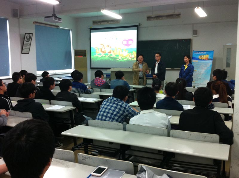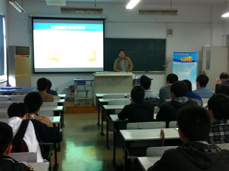 特变电工领导杨部长亲临会场,先对本公司进行了简单的介绍,公司的规划蓝图,公司对员工的福利等,之后公司的各部门领导向同学介绍了各自部门的工作情况,并解答同学们的各种问题。同学们也对世界500强公司充满兴趣,现场气氛十分活跃。