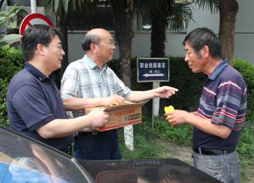 由于近几日申城持续高温,高职学院工会为切实开展面对面、心贴心、实打实服务教职工工作,学院工会主席沈国平及工会干事等连续数天对学院工作在没有空调的课堂任课老师和实习工场,维修车间、食堂、门卫等教职员工进行了夏送清凉的冷饮发放慰问,为大家送上了一丝丝凉意、并嘱咐大家注意防暑降温,保重身体,以良好的精神面貌为构建和谐校园作贡献。