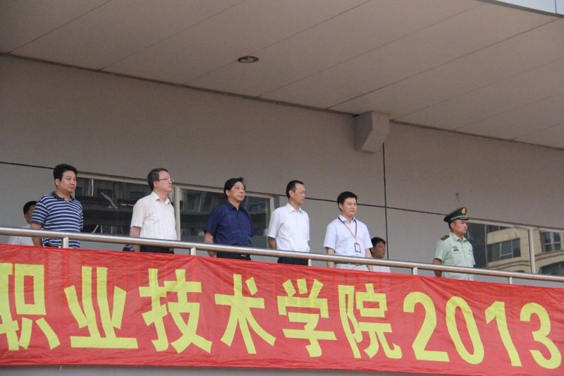 9月3日下午,军训师总指挥孙培雷副校长一行冒着骄阳莅临指导高职学院独立营2013级学生军训工作,校学生处处长徐阳,参谋长金起龙,高职学院院长刘启中,院党委书记柳如荣,党委副书记田盈耕、王东阳,副院长胡宁陪同视察。