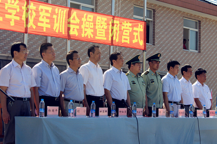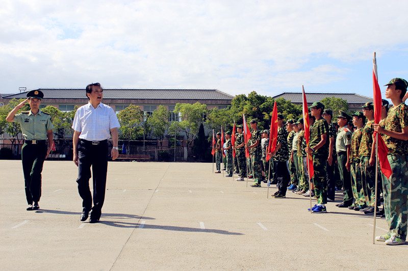 闭营式在雄壮的国歌声中正式开始。升旗仪式后,刘启中校长在军训营营长陈玮上尉的陪同下检阅了各连队方阵。