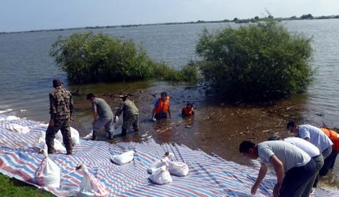 危险,不言而喻。他克服重重困难,说服领导同意,饱受与亲人的短暂别离,他明白这是一场战斗。在这场战斗里,每天装沙袋、系沙袋、投沙袋,24小时轮流站岗,观察险情。吃着泡面,依旧欢笑。为的就是人民的利益不受到侵害,保卫家园。