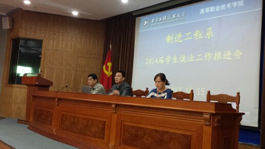 面对日益严峻的就业形势和企业对数控、模具专业岗位数的下降趋势。高职学院制造工程系领导十分重视学生的就业工作,为了让2014届学生就业得到保障,能够更顺利地找到合适的工作,学院制造工程系于2013年10月15日14:45分在综合楼11楼举办了一次2014届学生就业工作推进会。会议由制造工程系党支部书记朱红新老师主持,制造工程系主任万军老师做动员。会议特邀就业办主任杨培成老师为同学们介绍就业形势和就业指导,参加会议的还有年级辅导员和班主任老师和就业办万杉老师。