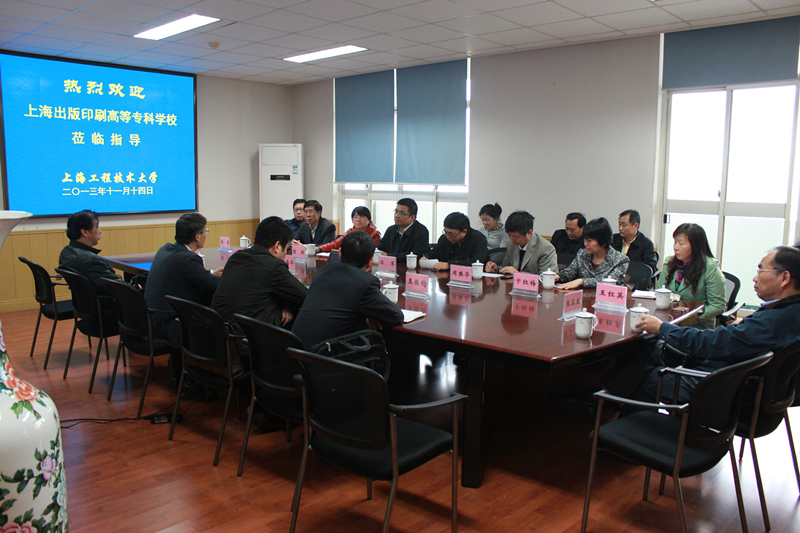 为了进一步推进产学合作教育,20131114日下午2,上海出版印刷高等专科学校常务副校长滕跃民一行到上海工程技术大学高职学院进行产学合作教育交流。副校长鲁嘉华携学生处处长徐阳、高职学院院长刘启中、校办副主任王振钧等接待了来访,双方就如何加强二校联系,在产学合作教育和学生顶岗实习等实践教学工作方面展开了深入讨论。