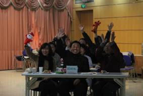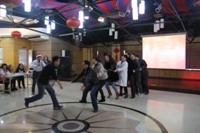 本次活动与以往的联谊会有所不同、入场时随机分成4组,取好组别名称,各小组商讨参加各项活动的人员和方式,活动开始前以学院工会本年度开展的各项活动的图片PPT展示及家庭幽默录像,随着学院工会多才多艺的树长根老师表演的老克勒韵味的小号独奏《上海滩》拉开来了活动序幕,联谊会经过学院文艺委员朱建芳和树老师的精心设计活动内容丰富多彩;看图表演猜成语及物品、每组队员分别参与一个回味童年的游戏,(抓小鸡、丢手绢、击鼓传花、跳橡皮筋),全体舞动现学广场舞把联欢会推向了高潮,基础教学部何冰洁深情的朗诵了《致自己》,朱建芳老师声情并茂的演唱了《感恩》,联谊会在全场欢声笑语和谐的旋律声中拉下帷幕。