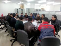 研讨会开始时,双方互相介绍了团队的各位老师,宝钢方面负责人对机电工程系的实训场地和设备大加赞许。此次研讨会主要针对宝钢机电一体化2013级教学计划的内容进行商讨,重点对“职业技术基础”和“职业岗位能力”两大课程中涉及的校企合作教学进行协调,从“双元制”模式出发,综合考虑企业需求和学员便利,进行校企分工合作。为提高工作效率,进一步加强合作,将涉及教学内容分为机械、液压、电气三部分,由校企双方的负责老师分组进行协调沟通,细化教学大纲、教学场所、以及教材等具体内容。