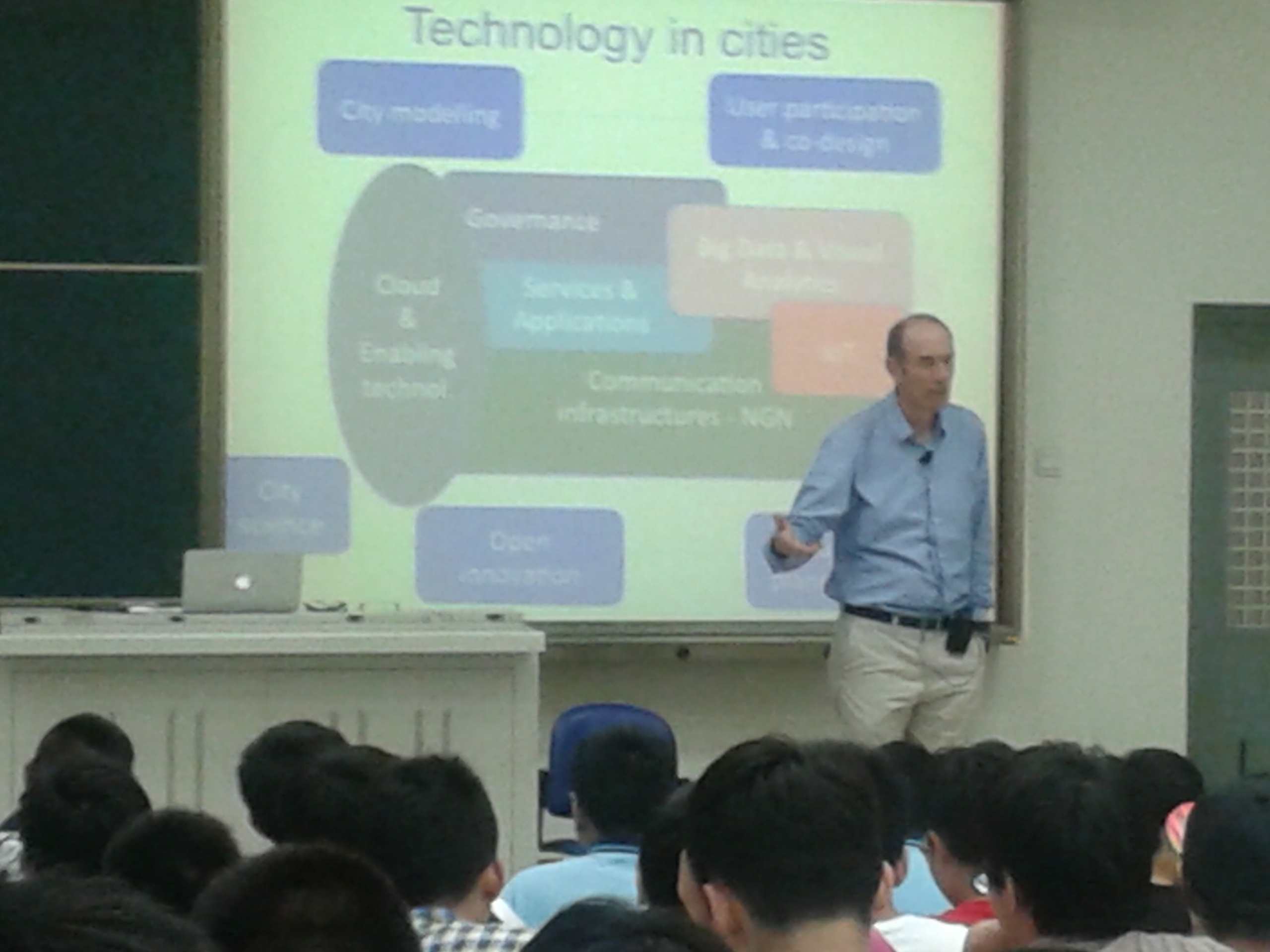 本次讲座,ClaudioFeijóo教授结合自己丰富的科研经验,主要讲述智慧城市的管理和创新平台的构建,从中探究一种新的关乎到政府、公民以及私人运营者的管理模式,通过城市应用程序的发展或公开数据的提供,将公民放在创造新的城市服务过程中最核心的部位。通过讲座使得同学们对智慧城市的发展有了全面的认识。