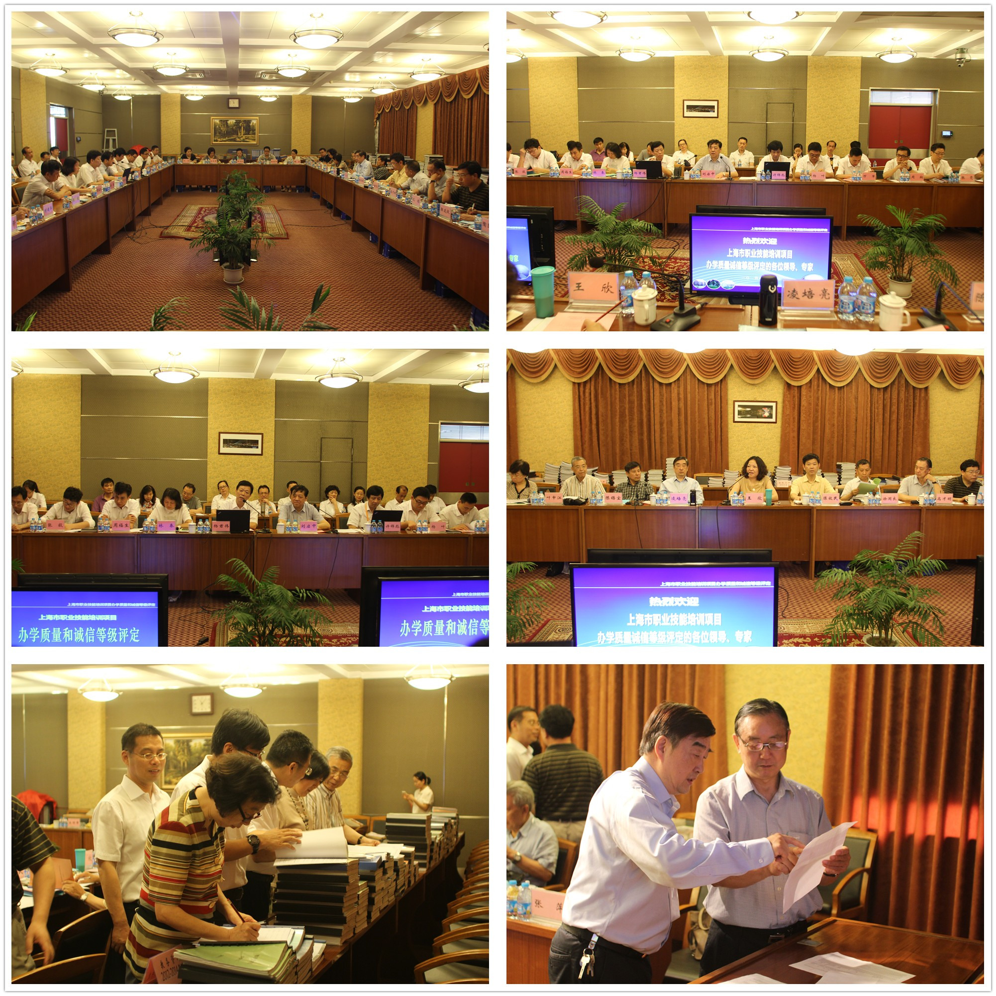 2015年7月2日上午,上海市职业技能培训项目办学质量和诚信等级评定工作在高职学院、高级技校、上海高级职业技术培训中心综合楼九楼报告厅进行。本次评定工作由上海市人力资源和社会保障局委托上海市教育评估协会进行。参加本次评定工作的领导和专家有上海市、区人力资源和社会保障局、上海市教育评估协会的领导及十一位专家组组长成员;上海高级职业技术培训中心主任刘启中、副主任许锦彪,继续教育部主任杨君伟、书记陈国荣及中心机械制造系、机电工程系及相关部门领导与教师参加了本次评定会议,会议由上海市教育评估协会王欣秘书长主持。