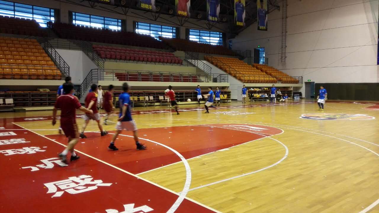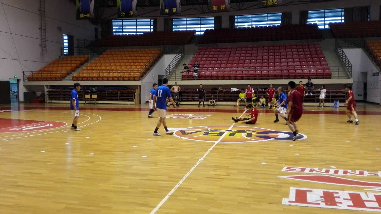 半决赛经过学校足球协会和学校相关领导多次的沟通协调,两场比赛都在室内体育馆进行,因为体育馆作为刚结束的全国大学生“五人制”足球比赛场地,因此参赛队员都比较兴奋,体验一下国家级的标准场地。比赛各队纷纷提前来到体育馆适应比赛场地和比赛用球。比赛开始高职学院队身着蓝色球衣,电子电气学院队身穿红色球衣,双方球队派出主力队员,试探对方球员位置的实力,比赛攻防转位很快,五人制足球比赛场地不大,对球员脚下功夫要求很高,每次的带球突破和打门或进球都得到场边的双方队员的呐喊和助威。电子电气学院队队员年轻,脚下动作灵活,凭借门前的运气球上半场首先得分,高职学院队通过调整战术适应场上比赛节奏,在前场进攻中利用空挡,高前锋万军身体侧碰扳平比分。下半场比赛双方攻防转换非常快,高职学院队配合带球突破频繁,提高了射门命中率、老将孙方、后卫冯建明在进攻中都有建树,高职学院队利用电子电气学院队后卫没有及时回防,高前锋万军再次建功,高职学院队最后以5:1大比分昂首挺进决赛。