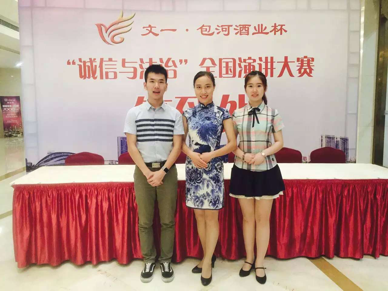 2015年8月7日,上海演讲协会会长刘德强携高职学院指导老师王柳丽、领队王新、参赛选手李晓晨、吴沼文(高职学院13、14级学生)及纳兰泽芸作为上海队代表共赴合肥,参与“诚信与法制”全国演讲大赛。