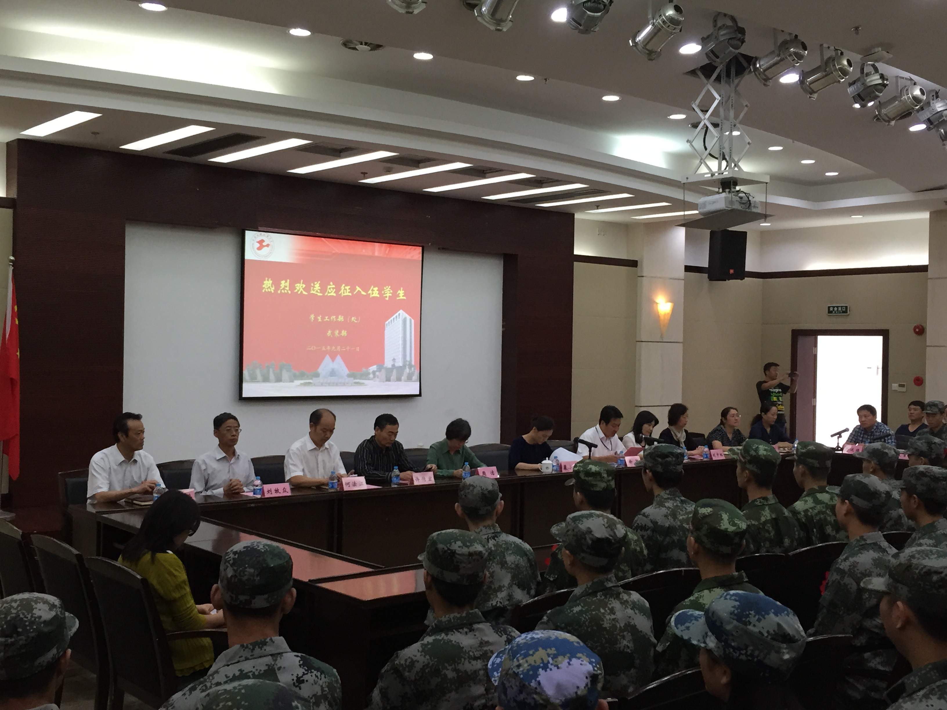 2015年高职学生征兵工作在经历了前期入伍动员、学生积极报名、现场确认与严格的体检等一系列程序之后,最终,有7名同学光荣入伍。带着学院的嘱咐与同学们的期待,这7名同学光荣地开始了他们的从军之旅。9月21日上午,2015年应征入伍学生欢送会在松江图文信息中心第三报告厅举行。 会上,校党委副书记裴小倩对入伍同学提出了期望,学院沈爱东、晏元强、吕添峰、郑俊豪、惠立民、王聪尧和叶清鑫7名同学接受了学院党委柳如荣书记、王东阳副书记的嘱托,立志将努力报效祖国、遵守部队纪律,秉承部队优良传统,为工程大争光。 会后,学院领导和7位光荣入伍同学合影留念。