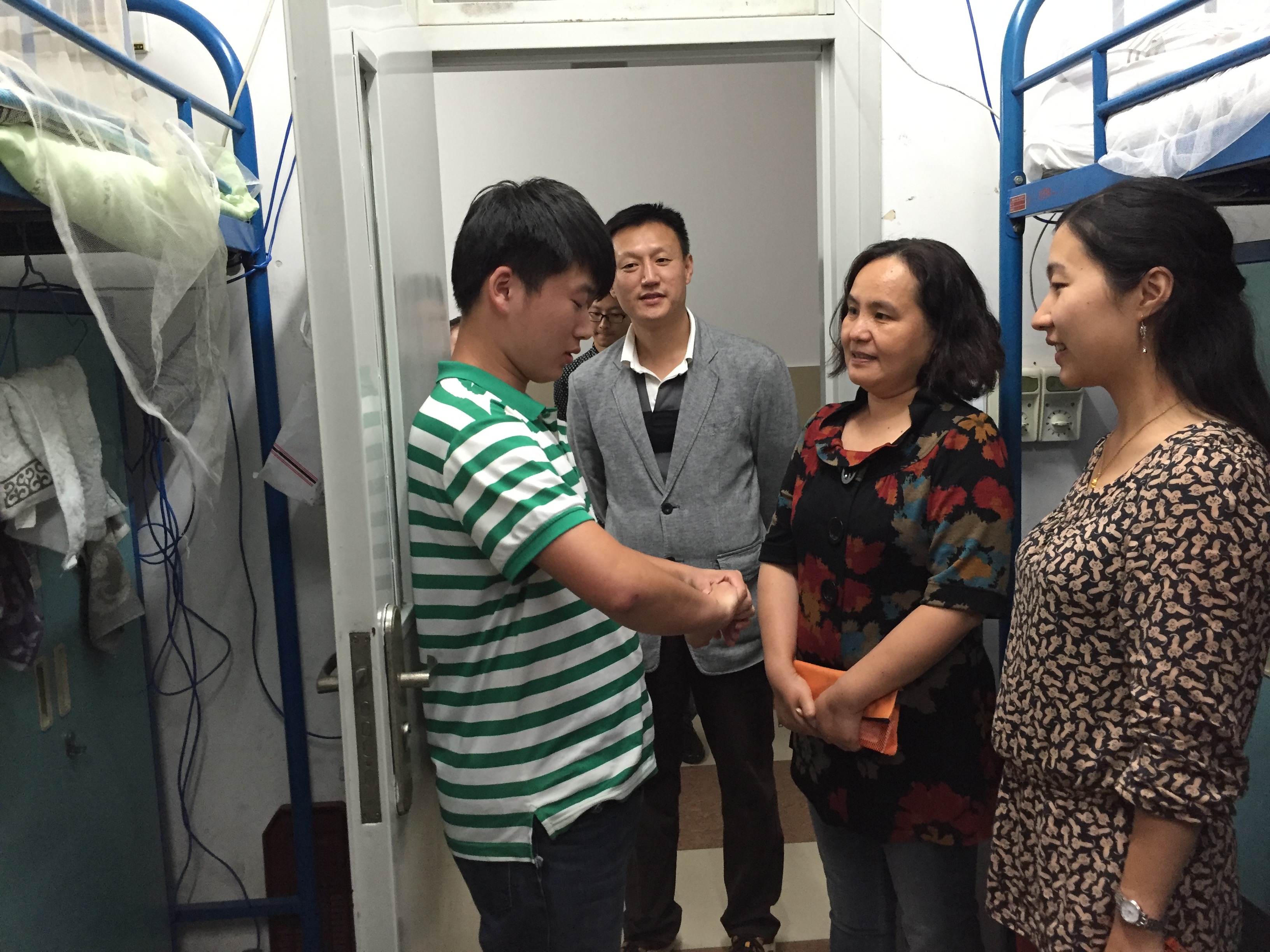 10月9日下午,随着高职学院2015年度无偿献血活动的圆满结束,奉献鲜血的同学们在医生和老师的嘱咐下在宿舍进行休息恢复。高职学院党委副书记王东阳携学生科、各系部书记、各系辅导员老师一同到学生宿舍对献血同学进行探望。