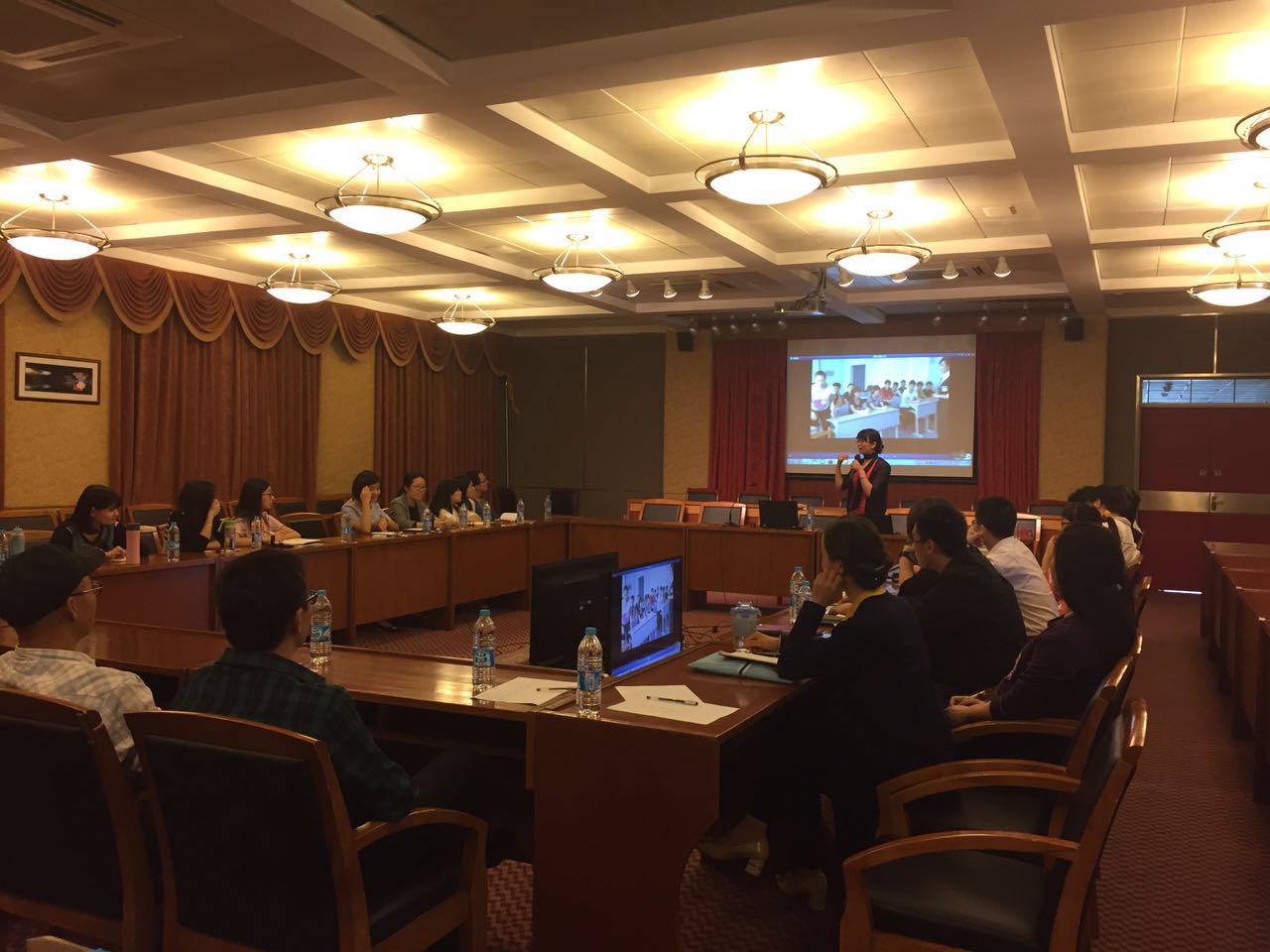 陈强教授的讲座分两天进行,主要涉及四个方面的内容:专业建设规划与团队、课堂教学改革与创新、微课设计制作与共享、相关课题申报与结题。陈强教授凭其丰富的授教经验及阅历,结合案例,通过大量的图片,视频及互动小测试,让所有在座教师都参与到讲座中来。陈强教授的讲座内容详实,语言生动幽默且发人生省,整整三小时的讲座却依然让各位教师感到意犹未尽,纷纷相约下周同一时间再相会。