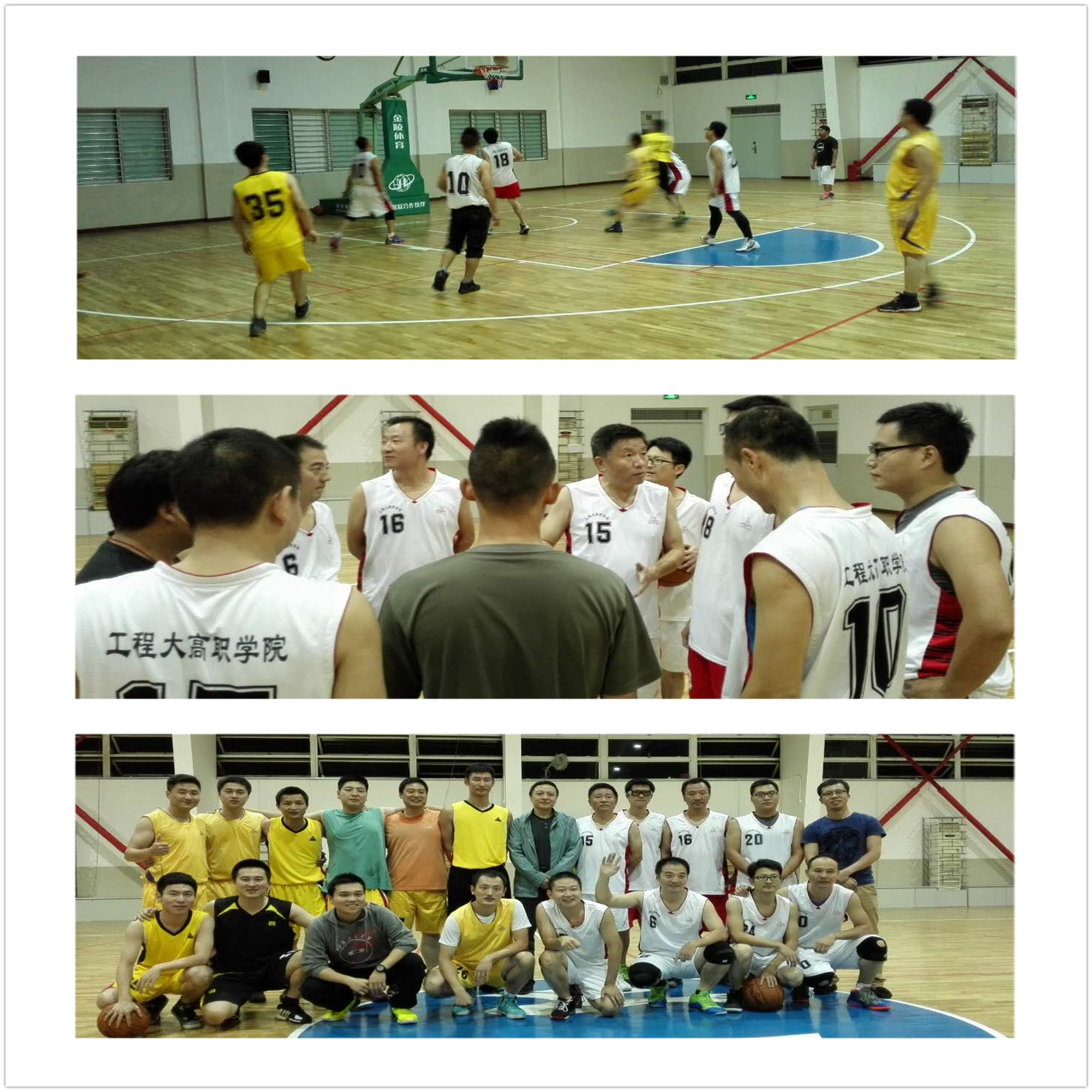 高职学院、高级技校教工篮球社团本年度教职工篮球队比赛活动开展的轰轰烈烈并取得了可喜的成绩,为了提高学院、校教职工篮球队的技战术水平,检验训练水平,同时增进与本区域各单位之间的友谊,11月3日晚上高职学院篮球队在副院长胡宁的带领下在学院体育馆和上海市公安局刑事侦查总队(803)篮球队进行了友谊比赛。