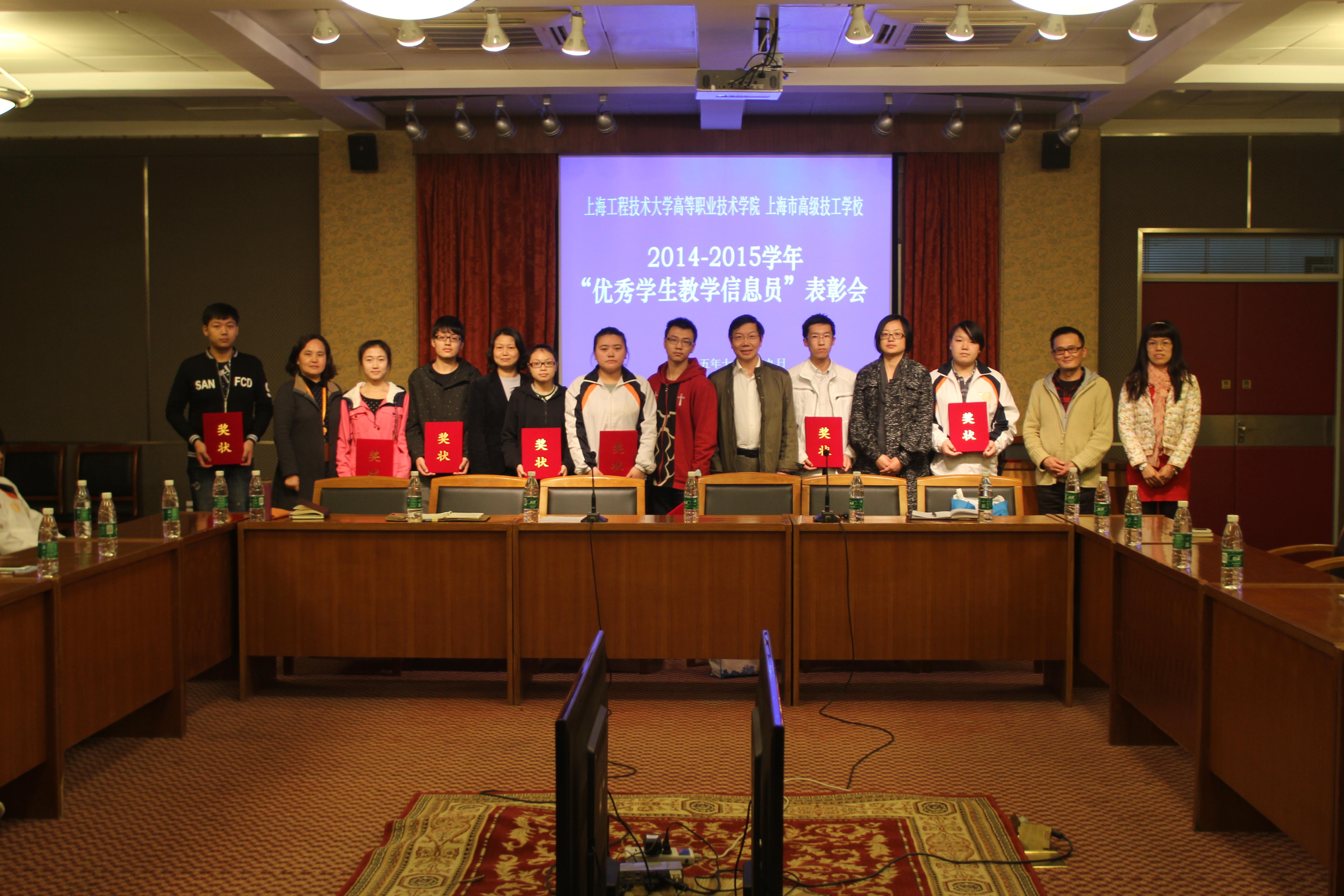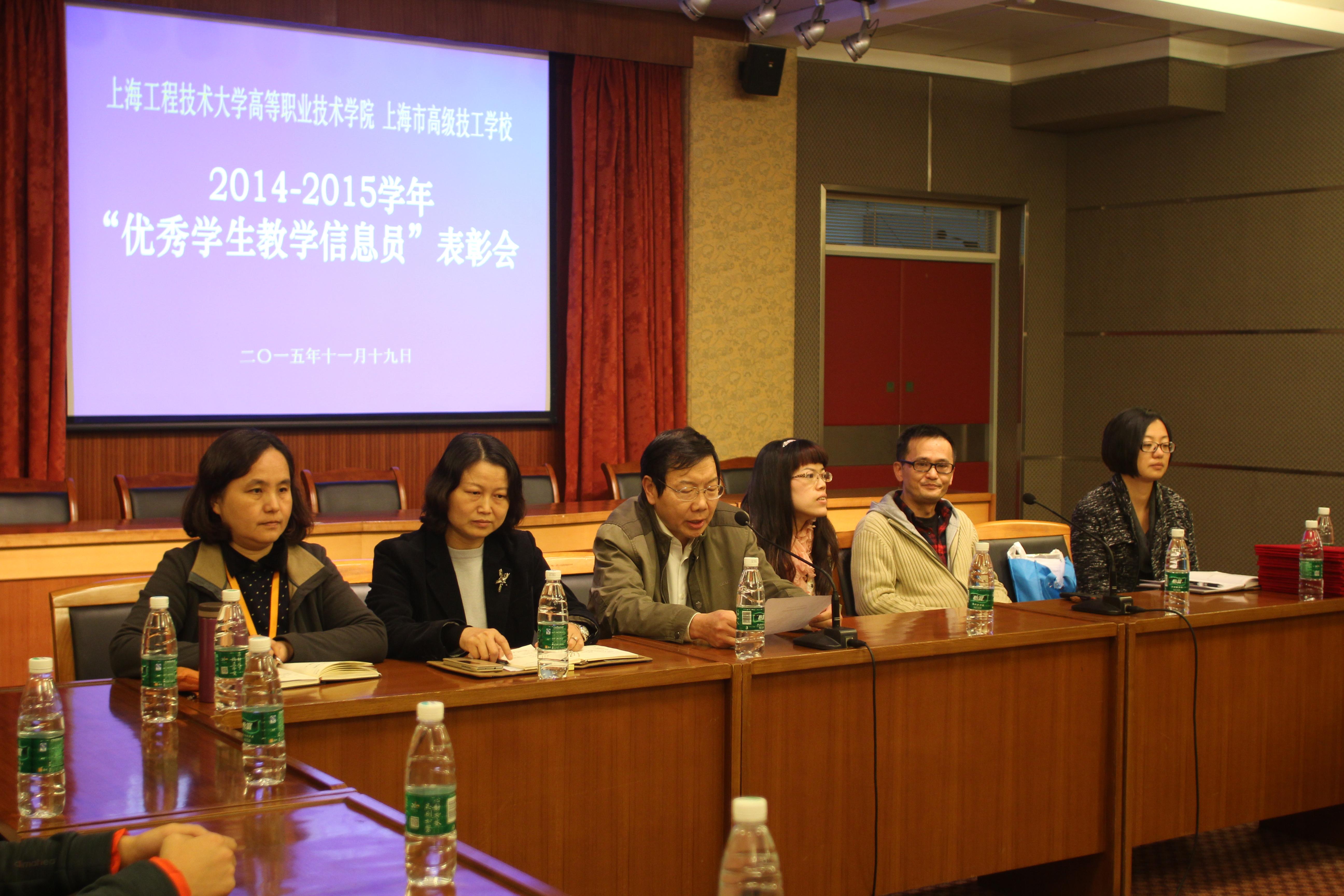 2015年11月19日下午,高职学院、高级技校在综合楼九楼报告厅召开了2014-2015学年“优秀学生教学信息员”表彰会。学院、校副调研员杨国平、督导室、教务科、学生科、三系党支部书记和全体学生教学信息员出席会议。 会上,副调研员杨国平宣读了学院、校对九名“优秀学生教学信息员”的表彰决定,教务科研科长、学生科科长及三系支部书记对被评为“优秀学生教学信息员”的同学表示祝贺,望优秀学生教学信息员再接再厉,努力学习、工作,为提高学院、校教学质量作出更大的贡献。 高职学院、高级技校 周翔(文) 秦世鹏(摄)