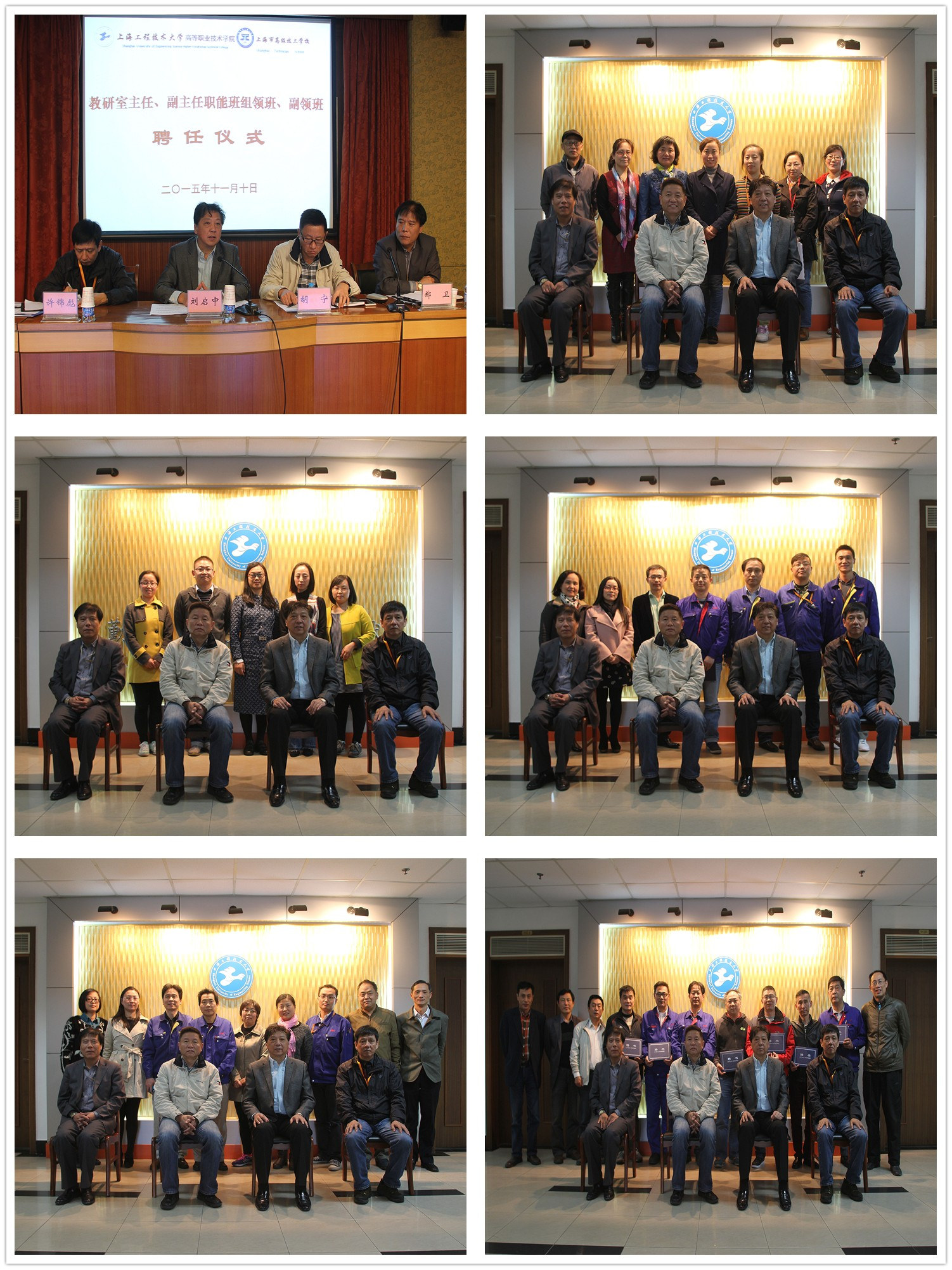 学院、校院、校长刘启中首先宣布《关于聘任教学系部教研室主任、副主任及后勤职能班组领班、副领班职务的通知》。随后学院、校各领导为各位教研室主任、副主任及班组领班、副领班颁发聘书。副院、校长胡宁、许锦彪、郑卫分别从教育教学、科学研究、技能指导、后勤服务等方面结合十三五规划,对各教研室、后勤职能班组提出了详细的未来工作方向与展望。最后,学院、校院、校长刘启中教授发表了重要讲话,从“四个注重”和“四个增强”两个方面做了相关的工作要求。