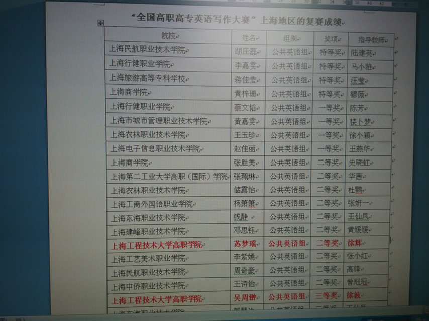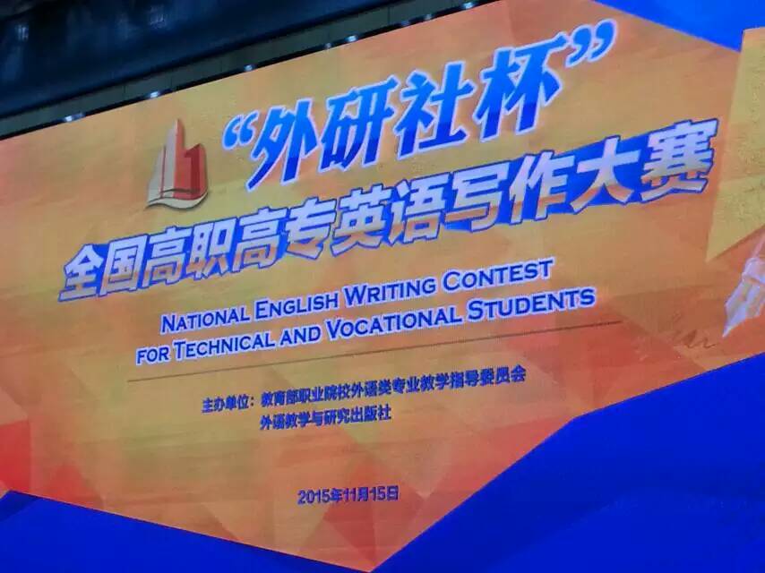 由教育部职业院校外语类专业教学指导委员会,外语教学与研究出版社联合承办的第六届“外研社杯”全国高职高专英语写作大赛上海地区的复赛,于2015年11月15日在上海工商外国语学校举行。经过激烈角逐,高职学院苏梦瑶同学和吴周翀同学分获大赛二等奖和三等奖,他们的指导老师是基础教学部的徐辉和徐波老师。 “外研社杯”全国高职高专英语写作大赛于2010年创办,至今已成功举办六届,参赛院校数量达700多所,大赛充分体现职业教育特色,紧跟时代要求。本届大赛的决赛赛题创新性地设置看视频进行写作,考查学生在真实的职业场景中有效应用英语写作解决问题的综合能力与素质,有力地推动高职高专英语教学的多元化发展。