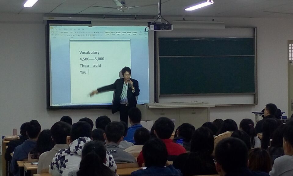 整个演讲非常生动有趣,而且与同学们息息相关。一上来老师针对同学们的情况,提到同学们要想通过全日制专升本,获得将来得到学位,基础必须是要学习好英语,可见学好英语的重要性。马老师主要讲了两个要点,一个是词汇,一个是新文化。他讲到,要考出4级,基本词汇的要求是4500-5000,很多同学一看就望而却步,其重要原因就是同学们没有掌握方法。马老师举了很多例子,中文对于外国人来说很难认,因为每个字都有偏旁,然而,英语也是如此,很多单词都会有它的“偏旁”,即我们常说的词根,他举了很多例子来帮助同学加深印象。最后他提到了要想学好英语,还有一个必不可少的就是外国新文化的掌握。中外文化的差异是非常大的,如果我们不了解外国的文化,对于我们学习语言有很大的障碍。最后,整个讲座在同学们热烈的掌声结束了。