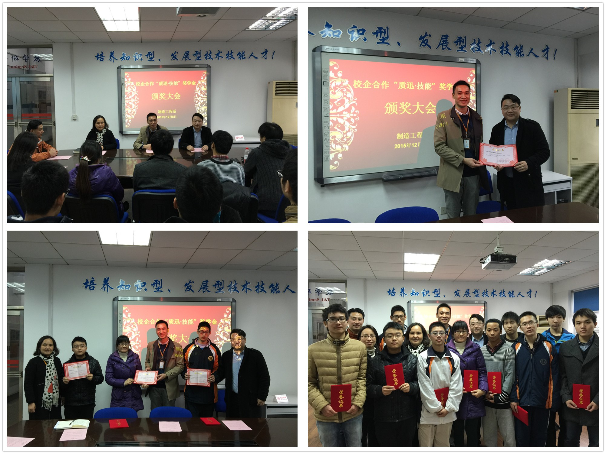 此次,共有10名学生光荣地获得2015年度校企合作“质迅•技能”奖学金。在此,对上述获奖学生表示热烈的祝贺,更希望全系学生以他们为榜样,积极参加各类技能竞赛及创新活动,刻苦钻研、奋勇拼搏,再创优异成绩。
