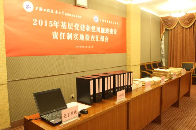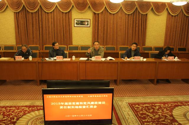 12月23日,校党委夏斯云副书记一行赴虹口校区对高职学院2015年度的双责任制落实情况进行了实地检查,校组织部副部长、党校常务副校长朱洪春、校纪委副书记、监察处处长徐国祥、监察处副处长刘珺、特邀组织员吴德林同行,高职学院党政班子成员、党委委员、党支部书记、组织员、党代表、党员群众代表参与汇报会。