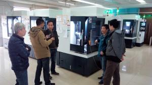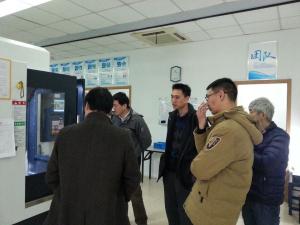教师们首先参观了企业的生产现场,初步了解企业的生产设备、产品与加工流程,该公司是一家专业生产玉器工艺产品的企业,采用了现代精密机械加工的设备与手段,加工设备包括转速在3万转以上的精密高速5轴加工中心、2万转以上的雕刻机等,是上海乃至国内运用数字化设备加工玉器制品的先驱者。随后,教师们与企业工程师交流了企业生产实践碰到的技术难题,尤其是玉器精细特征的加工,例如莲花底座的花纹等,以及加工用刀具的定制加工等,双方在生产现场对加工的问题进行了初步分析与探讨。